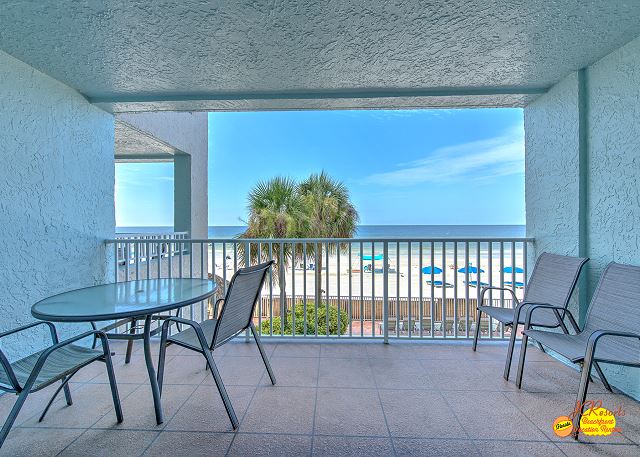 Great Value --Home Away from Home -Ram Sea 104 is a BRONZE rated two-bedroom, two-bath Gulf Front vacation rental located in N. Redington Beach. This spacious 1st-floor (Not Ground Level) vacation rental has a cozy décor and includes a private Gulf Front balcony with a view of our beautiful white sugar sand beach.104 offers a full size, fully-equipped kitchen complete with everything you need to enjoy dining at home. Free wireless internet access. Flat Panel TVs (cable) in the living room and both bedrooms. Telephone with free local calls. Sleeping accommodations include one queen in the master bedroom and 2 queen beds in the 2nd bedroom. Central heat, air conditioning and ceiling fans. No smoking. Two parking spaces. Coin operated laundry facilities on premises. Friday only arrivals in peak seasons. Maximum occupancy: 6