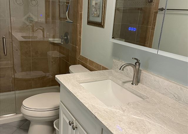 Vacation rental 510 offers a full size, a fully-equipped kitchen complete with appliances including microwave and dishwasher, stocked drawers and cabinets...everything you need to enjoy dining at home. Flat Screen Cable TVs in the living room and all bedrooms, telephone with free local US and Canada calls along with free Wi-Fi are also provided.