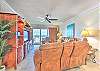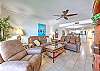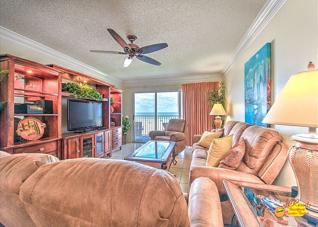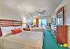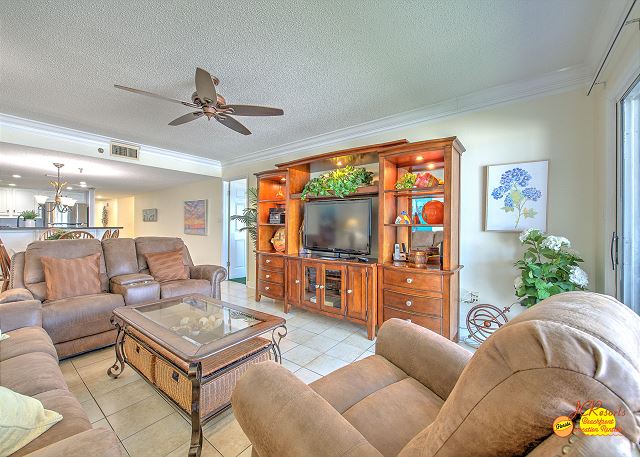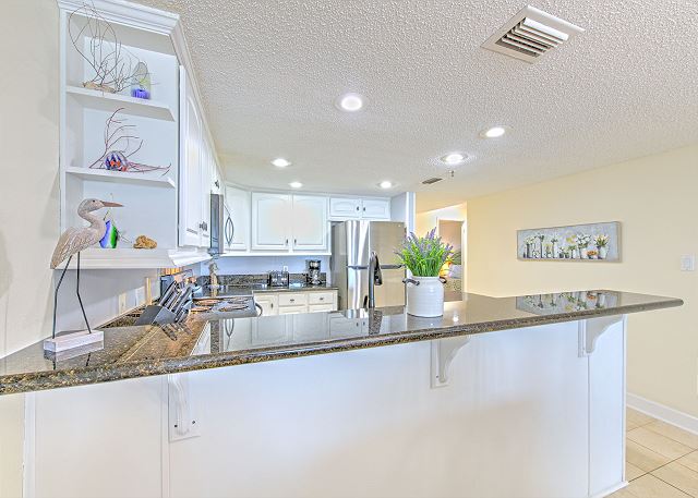 Vacation rental 106 offers a full size, fully-equipped kitchen complete with everything you need to enjoy dining at home. Color, flat panel TVs (cable) in the living room and all 3 bedrooms. Telephone with free local calls and free Wi-Fi are also provided.