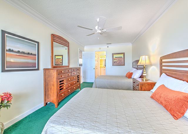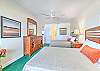 Sleeping accommodations include a 2 double beds in the main bedroom, 2 double beds in the 2nd bedroom and 1 queen bed in the 3rd bedroom. Central heat and air conditioning and ceiling fans. Washer and Dryer.